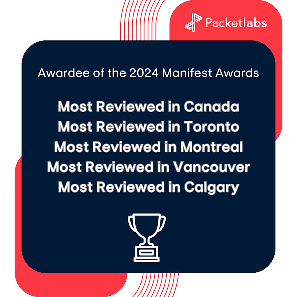 Recently, Packetlabs has been the recipient of five Manifest awards in the category of B2B firms, namely Most Reviewed in Canada, Most Reviewed in Toronto, Most Reviewed in Montreal, Most Reviewed in Vancouver, and Most Reviewed in Calgary.